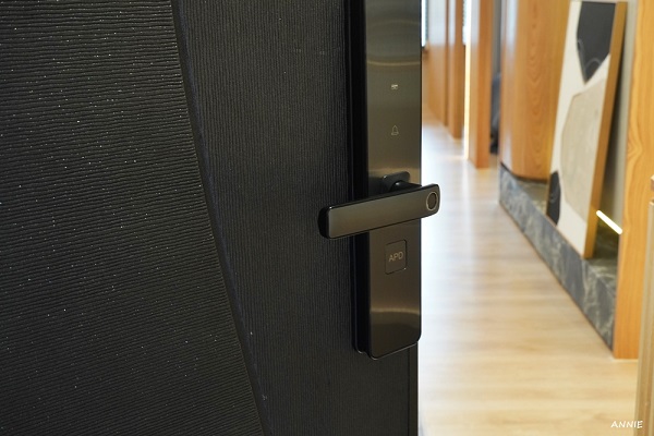 大門採用APD電子門鎖,機械式感應,關門即上鎖,不可複製的指紋感應是最安全,回家也不用狂找鑰匙開門入屋,高科技的電子鎖也是目前時下建築最喜歡採用的設備。