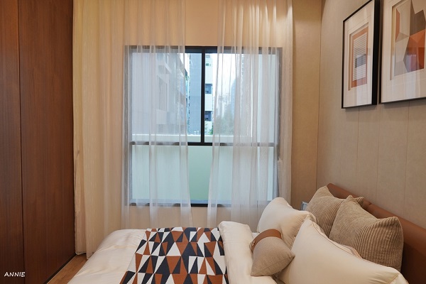 30坪3房的第二個房間空間較為寬敞一點,設置了大面積的窗戶,搭配透明紗簾更可以讓空間有較為穿透的輕盈感,房間收納空間也足夠,特別一提,房子內的窗戶皆使用台灣在地30年牌子-錦鋐氣密窗,5+5強化玻璃,不僅氣密更可以水密,隔絕外界噪音,如果遇到大量的暴雨來襲,氣密窗更能防止大量潑水入內,我覺得能讓整個室內保持[靜]真的非常重要,待在家裡會更有安心感。
