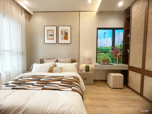 來到30坪3房的主臥室,主臥室空間更為寬敞,房間內有大面積的錦鋐氣密窗,房間的配置可高達兩座衣櫥的進駐,這對女主人收納可說是一大福音呢。