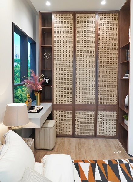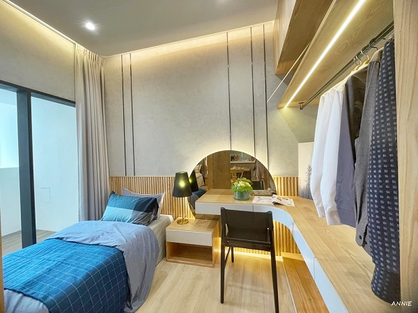 梳妝台與衣櫃的擺設可以參考樣品屋的設計,收納空間的範圍很廣,這點非常的加分。