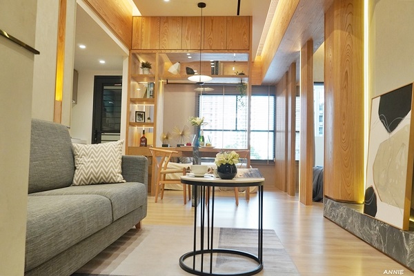 23坪3房一樣有大玄關,可以規劃放置大鞋櫃與置物櫃,客廳是家裡最重要的情感交流站,一入內全室的木製地板立刻溫暖了空間,回家就有了放鬆的氛圍。