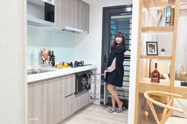廚房選用SAKURA設備,以及svago微烤爐,配置天然瓦斯,我發現櫥櫃設計真的很貼心喔,還設置了調味品收納區,別小看這樣的設計,調味品整齊收納好找之外,也防止油煙將調味品罐用得油膩膩的。