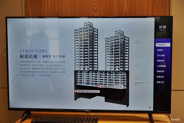 搭配耐震牆柱以及看齊台北101、SA級的鋼筋續接器,更是可以有效的強固建築本體,嚴密的建築結構都會在專業人員解說時一一用簡報方式呈現。
